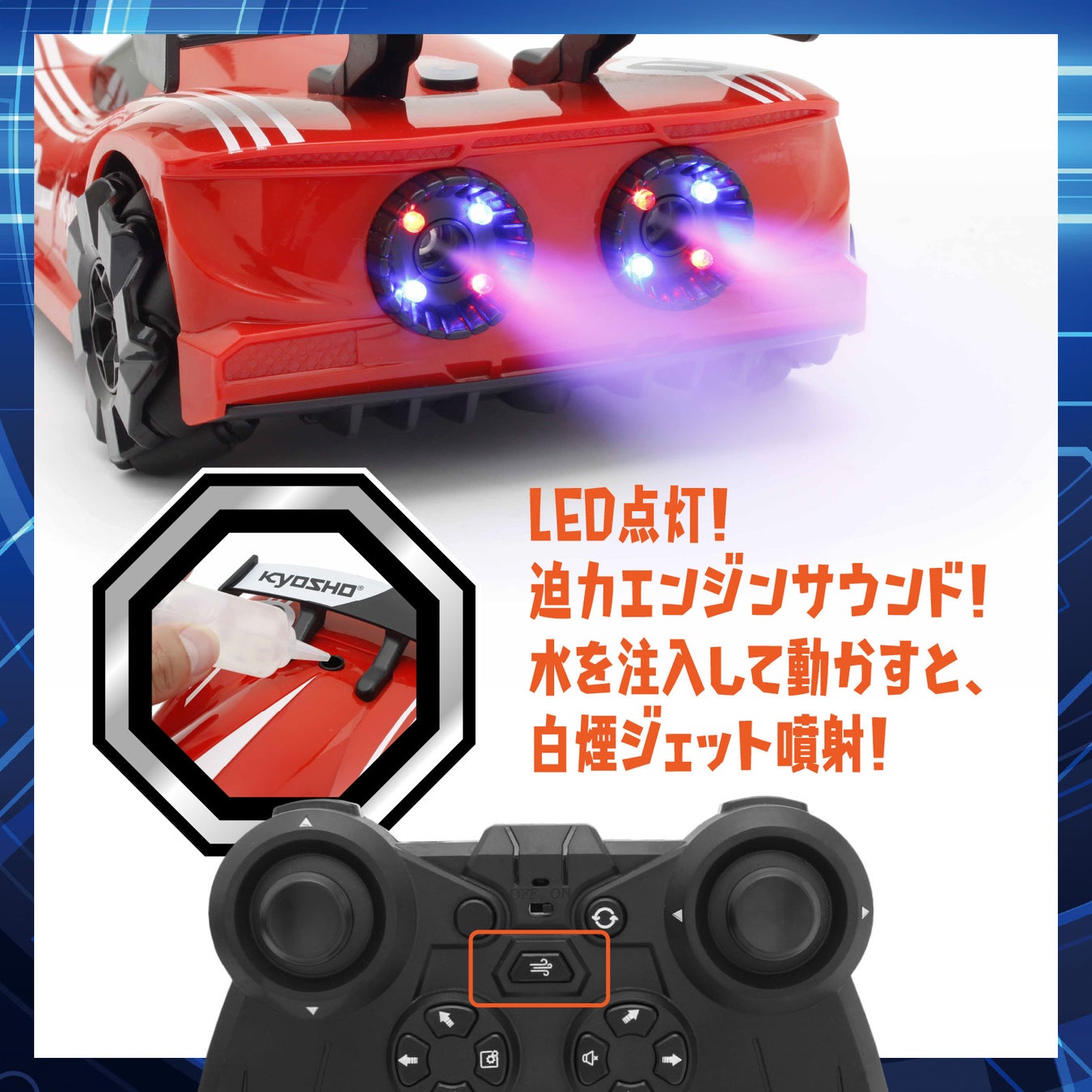 後部からの白煙ジェット噴射やLEDライト点灯機能、エンジン音など、様々な機能を搭載している。