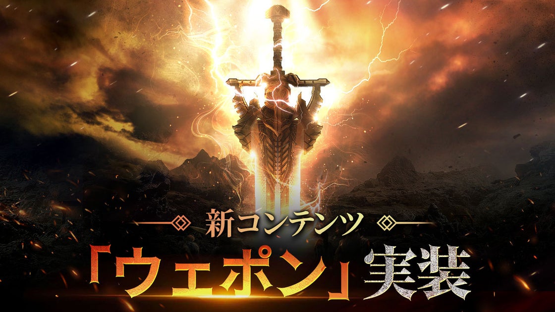 新コンテンツ「ウェポン」は、武器の外見を変えることでステータスを向上させる機能で、一般から神話までのランクが用意されています。