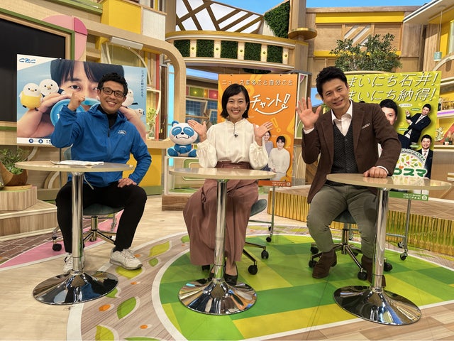 トークの内容は年末年始特番の見どころやプライベートネタで、若狭アナは愛娘のエピソード、石井アナは父親との思い出を話します。