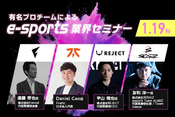 2024年1月19日に開催される「e-sports業界セミナー」では、国内・世界大会で実績を上げる有名なeスポーツプロチームの代表者が登壇します。