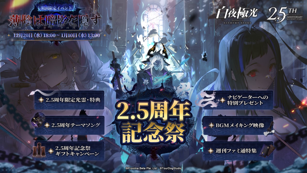 グローバルゲームブランドLevel Infiniteの『白夜極光』が、2.5周年の大型イベント【薄陰は暗影を隠す】を開催します。