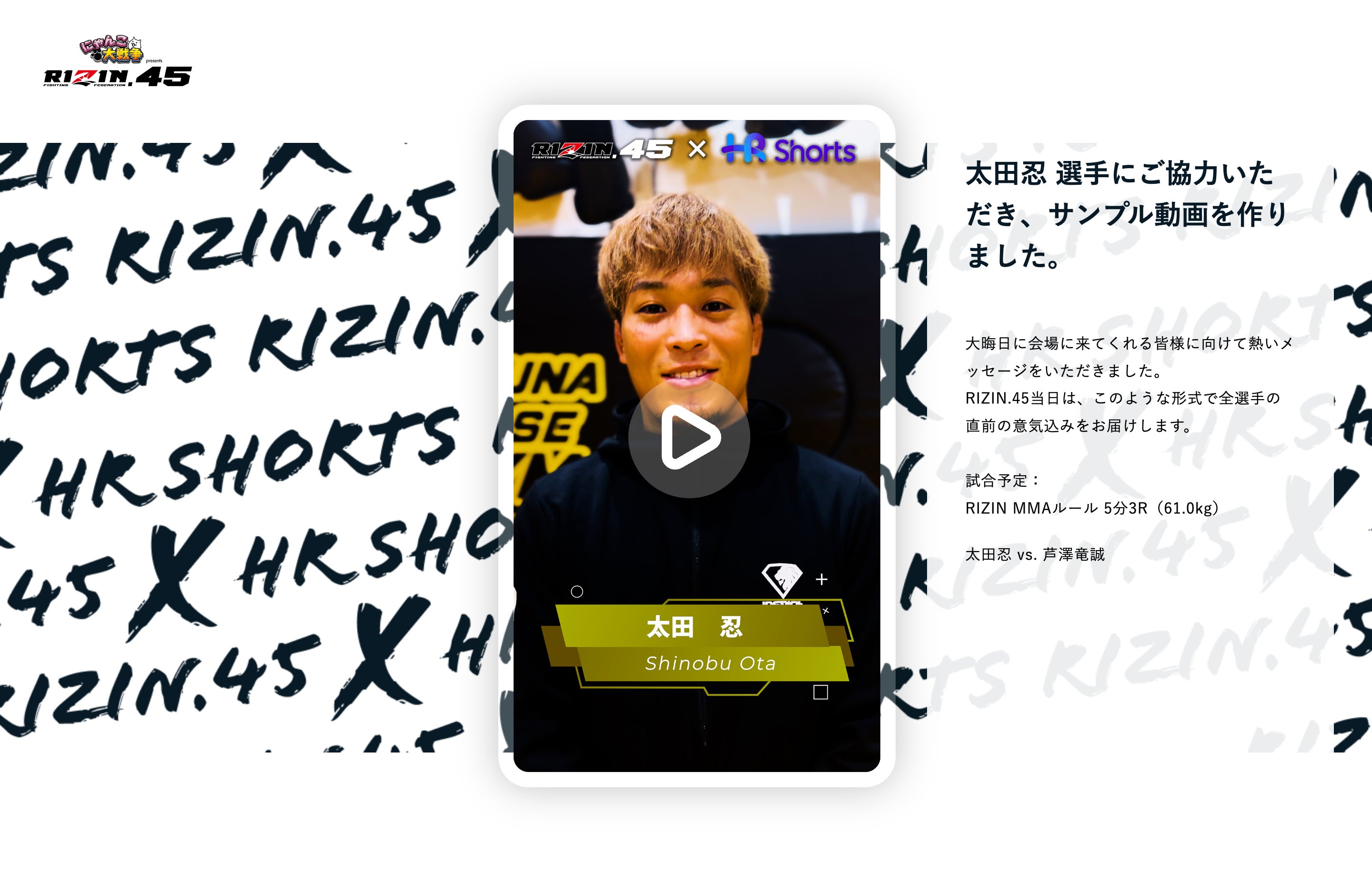 - RIZIN.45で出場選手のショート動画を提供する共同企画を実施する