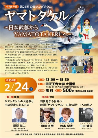 2024年2月24日に開催される第27回公開シンポジウム「ヤマトタケル~日本武尊からYAMATOTAKERUへ~」では、映画「ヤマトタケル~白鳥伝説~」についての解説や対談が行われます。