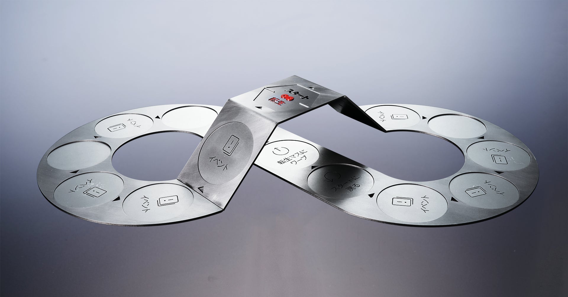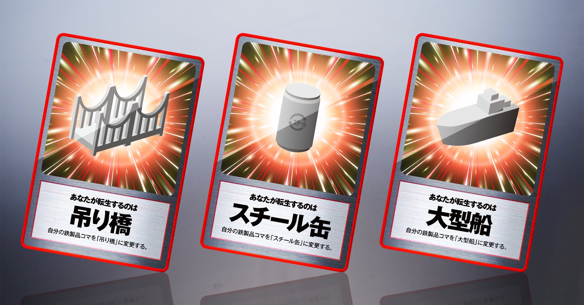鉄製の立体ボードとコマ、サイコロが鉄製で、転生イベントによってコマがさまざまな鉄製品に変化します。