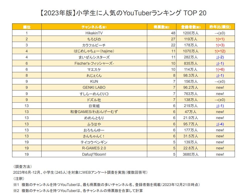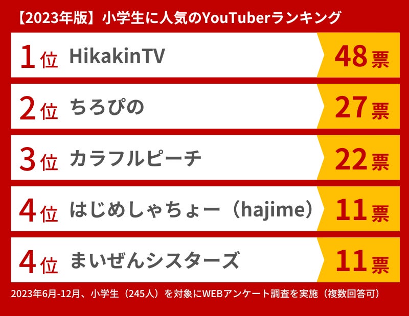 - FULMA株式会社が小学生245人を対象に「小学生に人気のYouTuber調査」を実施