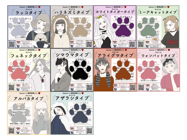 - 診断結果は「オモテ」と「ウラ」の2つのタイプで、動物タイプで診断