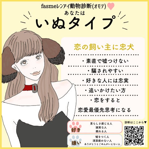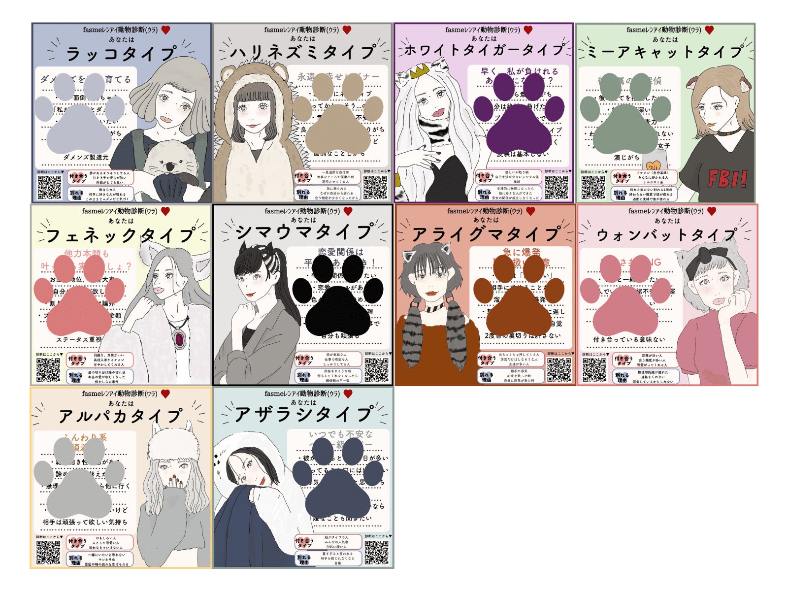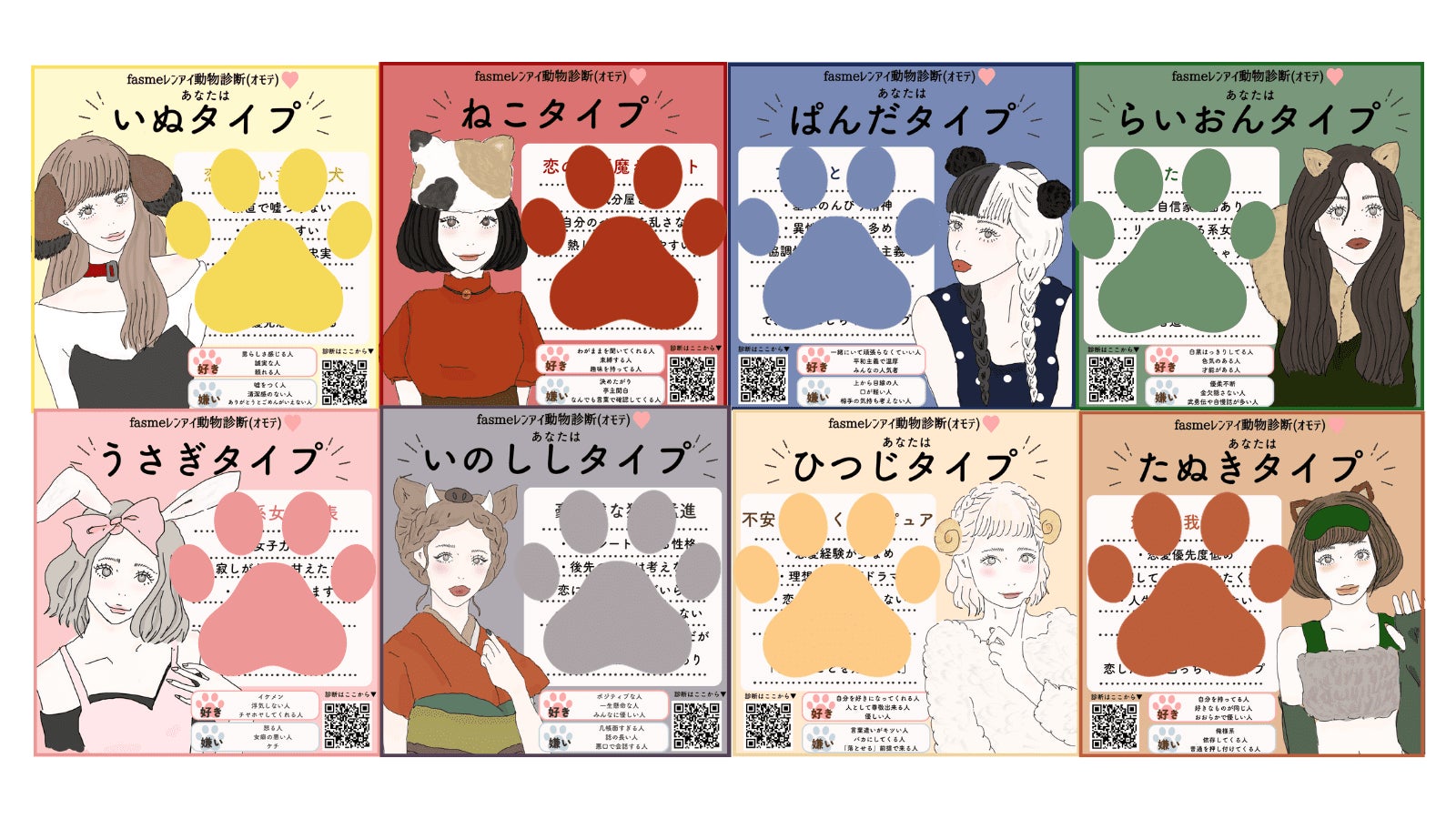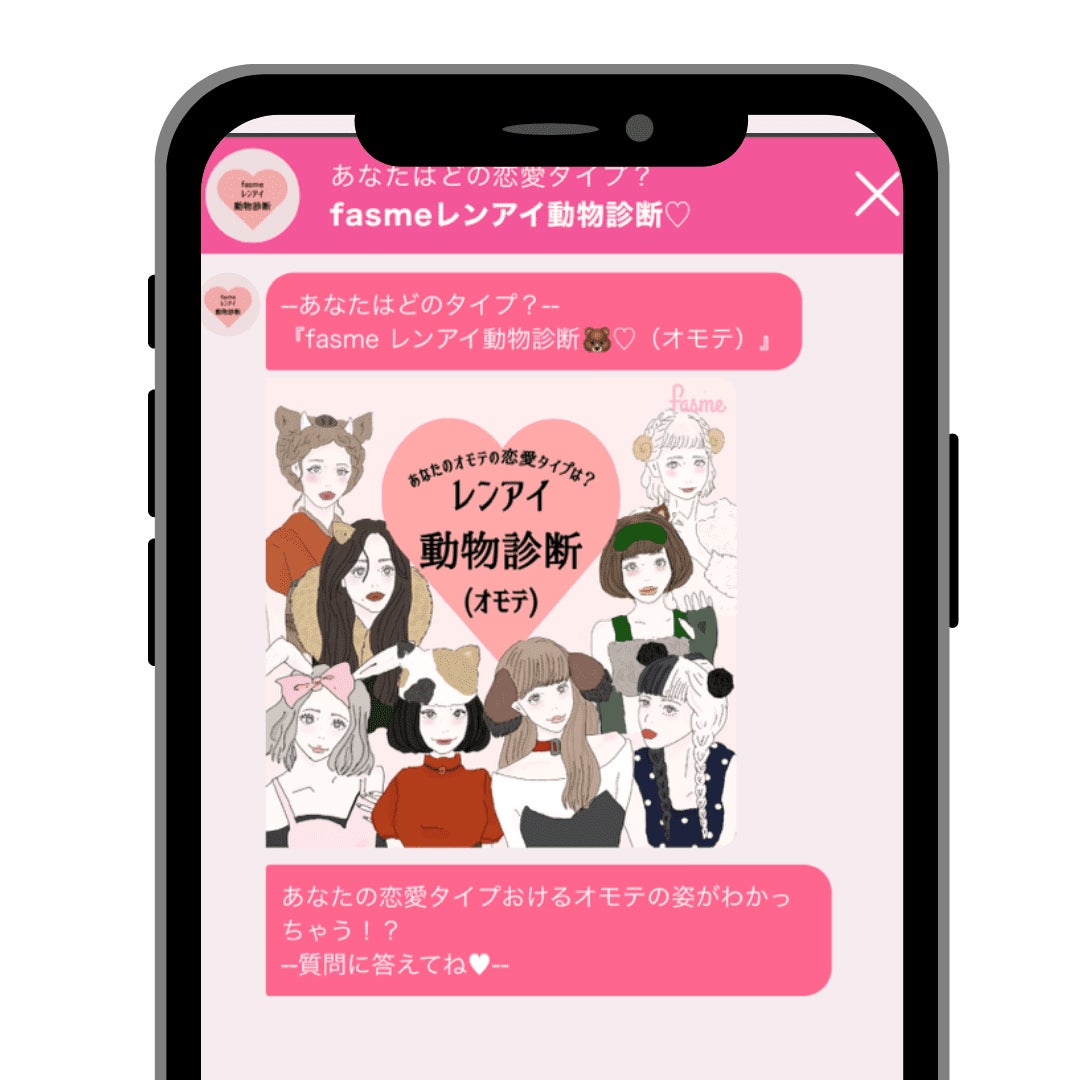 - 「fasmeレンアイ動物診断」は恋愛の性格診断コンテンツ