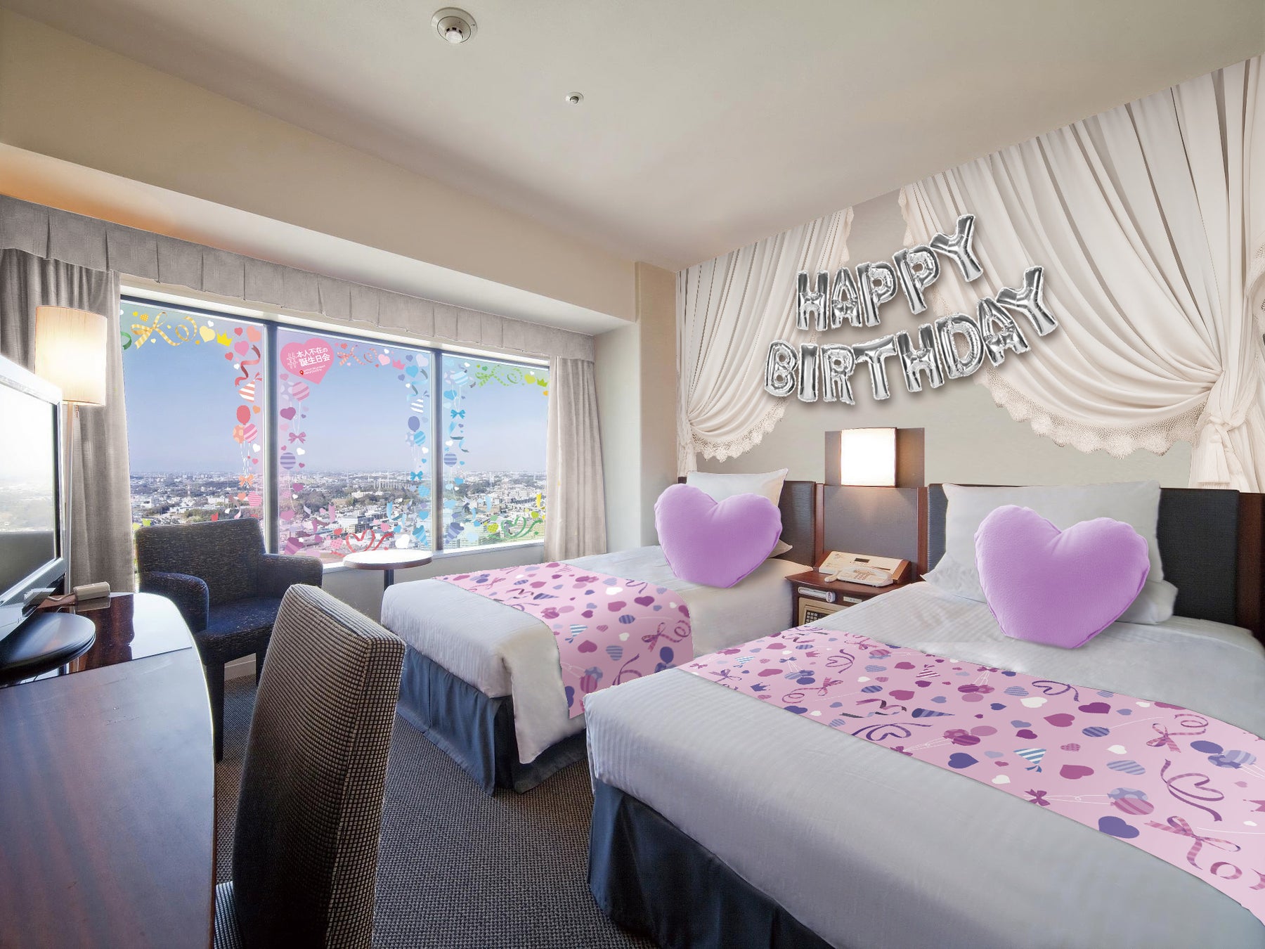 - 推し活ルームで推しの色に装飾されたお部屋で宿泊可能