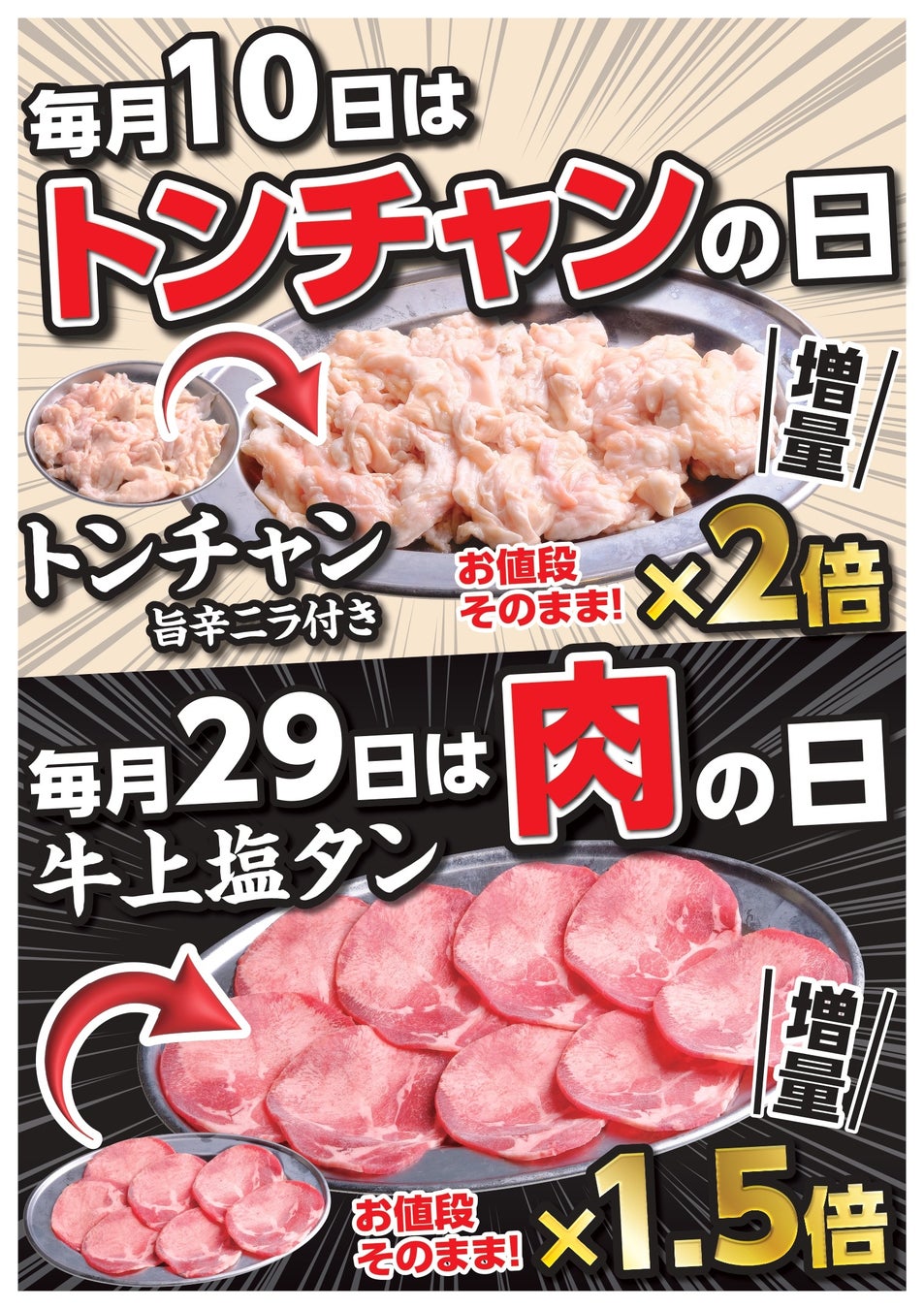 29日は「肉の日」で、牛上塩タンが通常の1.5倍の量で提供されます。