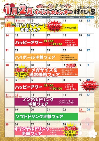 - ほるたん屋では毎月毎週イベント開催(トンチャンの日、肉の日、お得なフェア)
