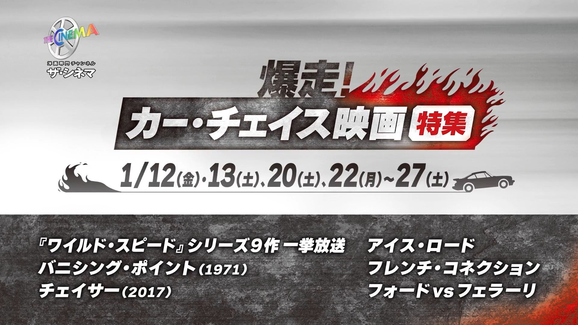 - 2024年1月、アクションチャンネルとザシネマの共同企画「1月は爆走月間!」がスタート