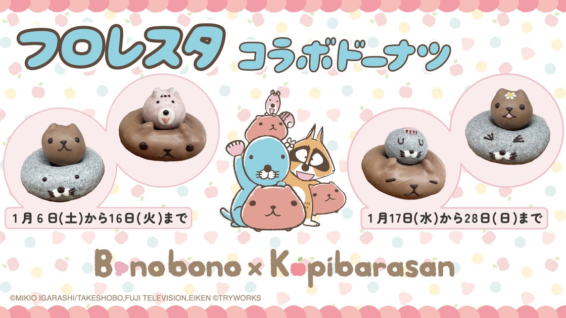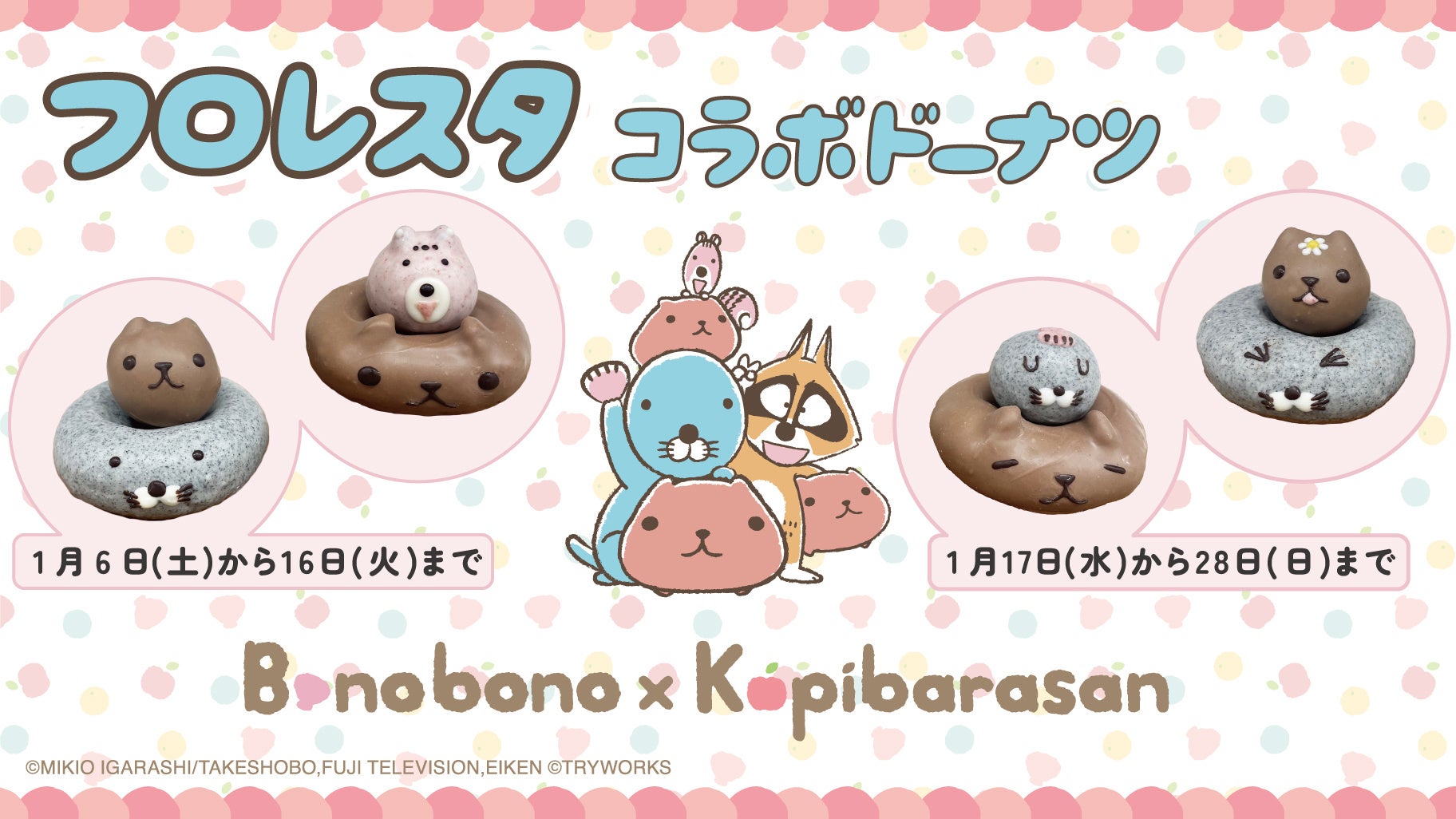 今回、ぼのぼのとカピバラさんのコラボドーナツ「ぼの×カピ」を販売します。