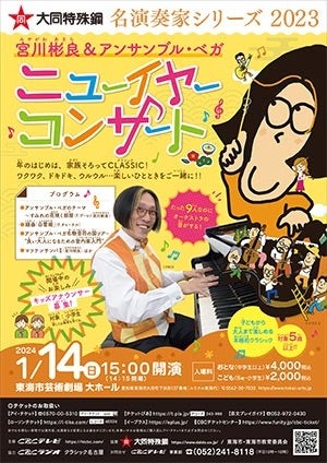 2024年1月14日(日)に東海市芸術劇場で開催される宮川彬良&アンサンブル・ベガのコンサートについてお知らせいたします。
