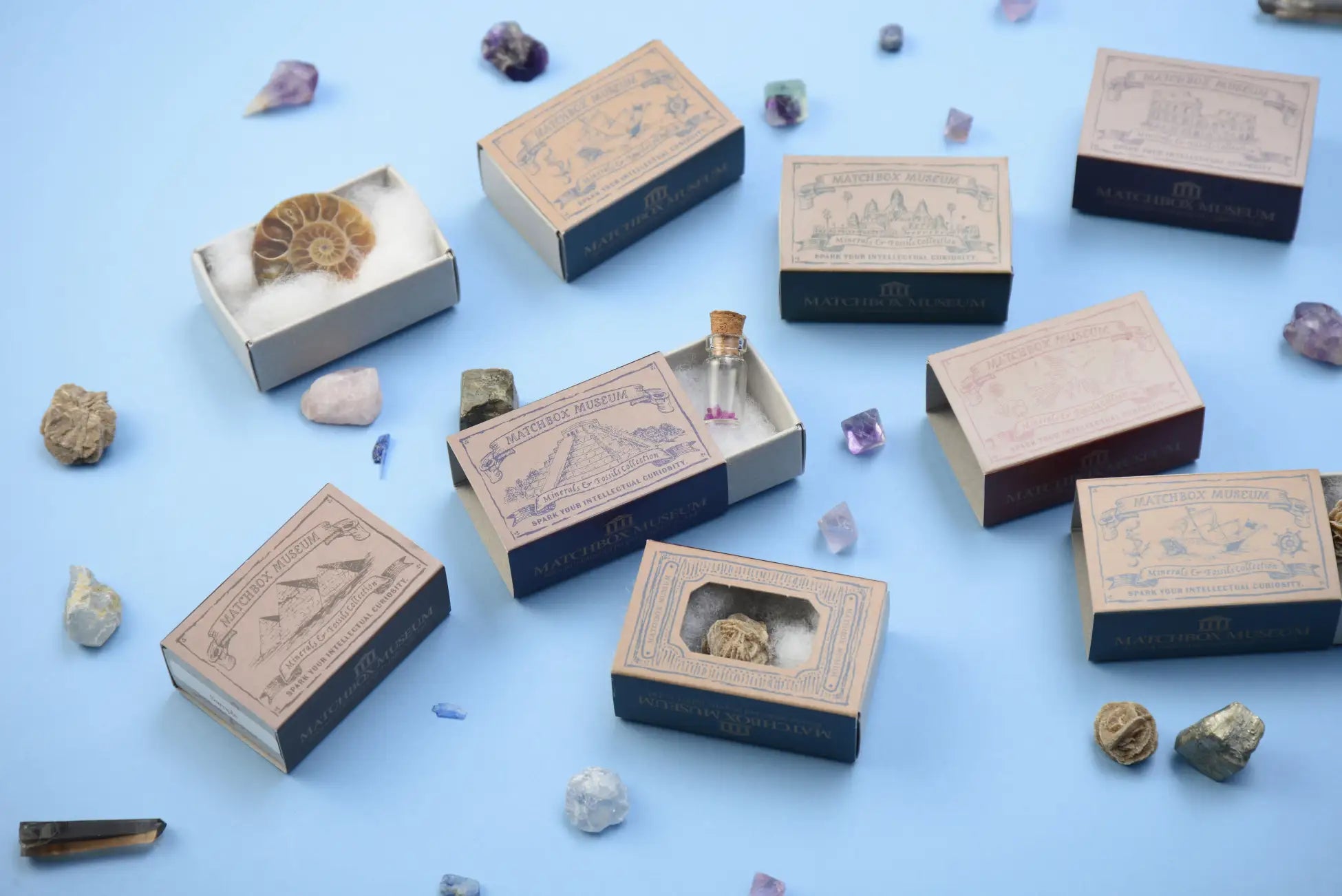 マッチ箱博物館には100種類以上の本物の鉱物や化石があり、価格は390円です。