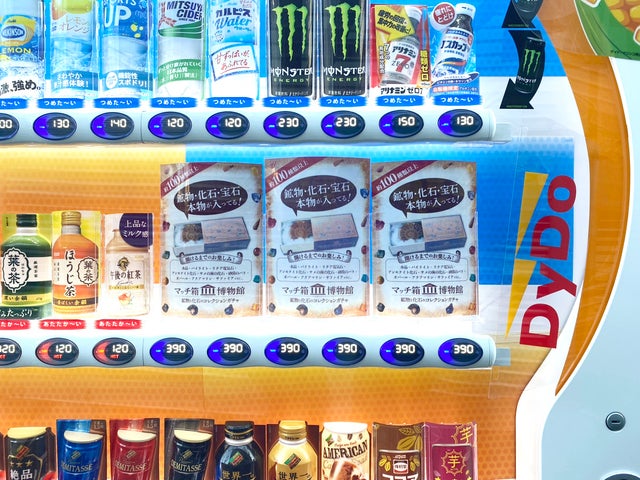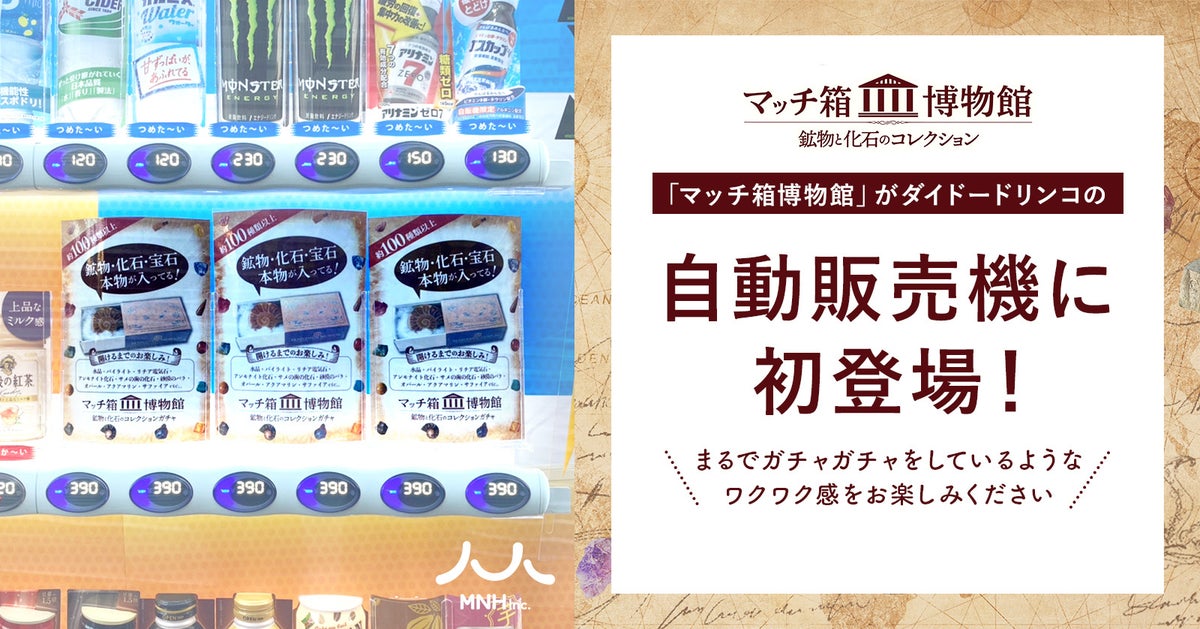 - ダイドードリンコの自動販売機で「マッチ箱博物館 鉱物と化石のコレクション」が購入可能