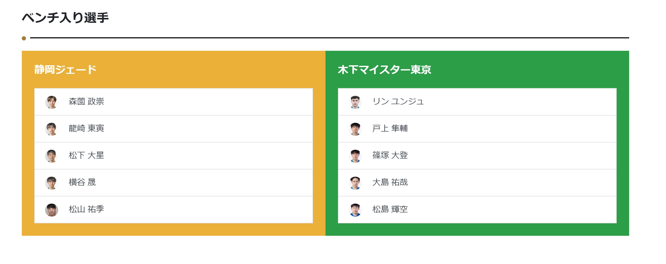 - ベンチ入り選手のお知らせ