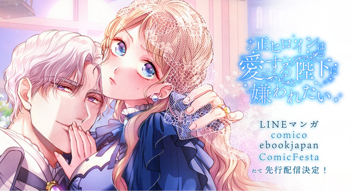 本日より、少女向けWebtoonレーベル「フラオト」の作品『正ヒロインは愛する陛下に嫌われたい』が、『LINEマンガ』『comico』『ebookjapan』『ComicFesta』で配信開始されました。