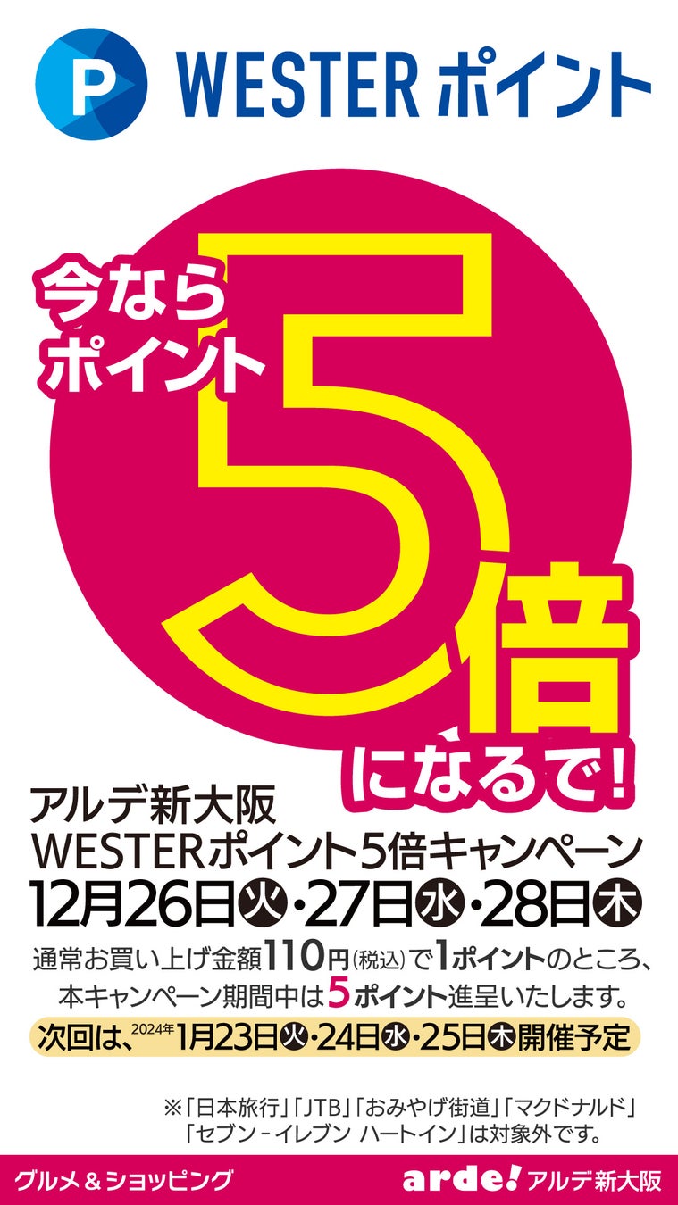 - WESTERポイント5倍キャンペーンやガラポン抽選会も開催