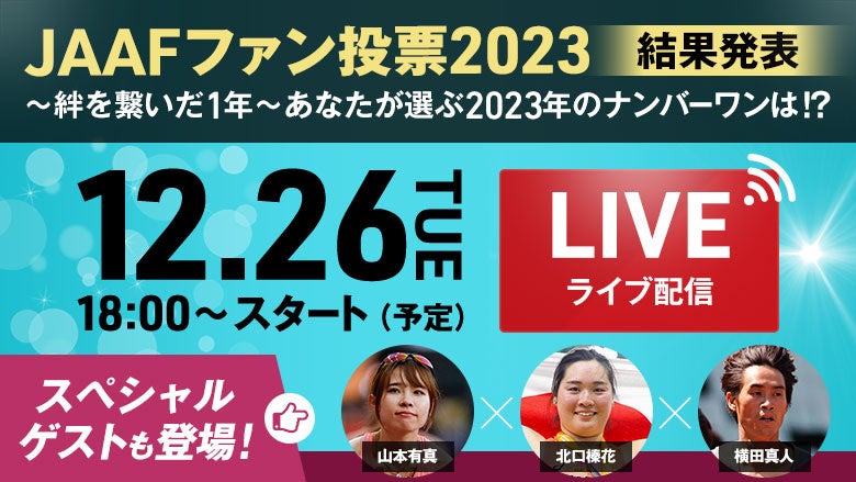 JAAFファン投票2023の結果発表イベントは、12月26日(火)18時からライブ配信されます。