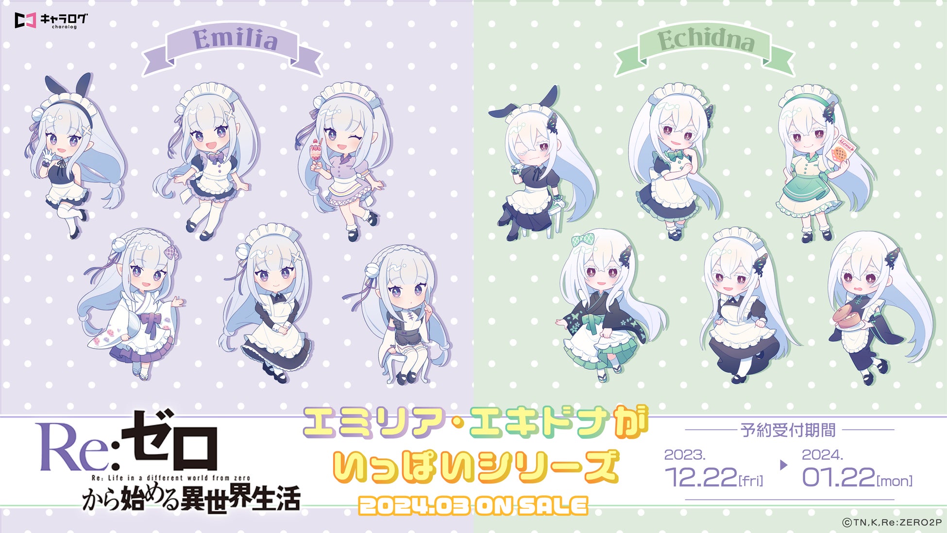 - 「エミリアがいっぱいシリーズ」と「エキドナがいっぱいシリーズ」の新規描き起こしイラストを使用したオリジナルメイド服衣装の商品が販売中
