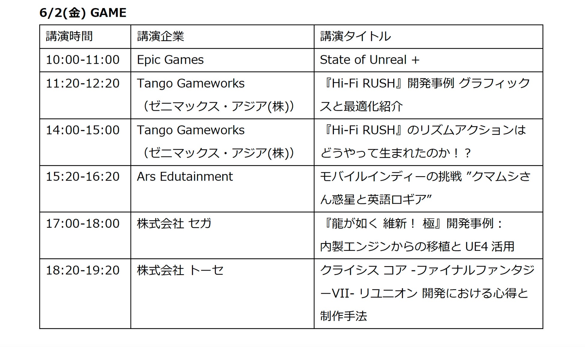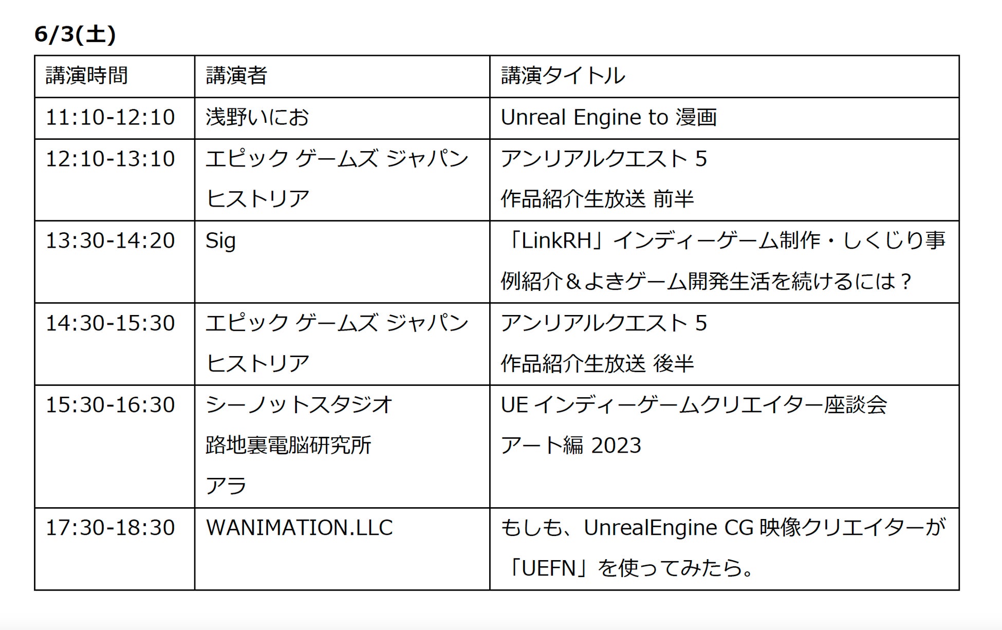 日程:2023/6/2 (金) Unreal Showcases 10:00 – 19:45
