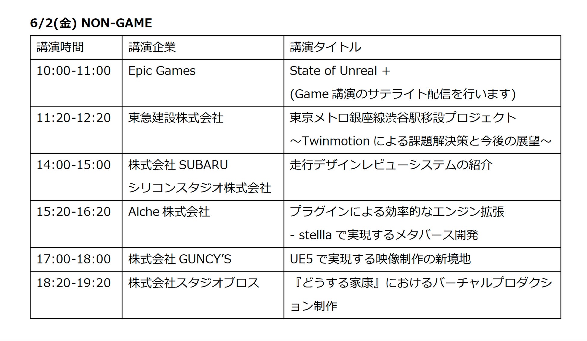 6/2(金) Unreal Showcases では、ゲーム業界だけでなくノンゲーム分野における事例まで幅広い講演をお届けします。