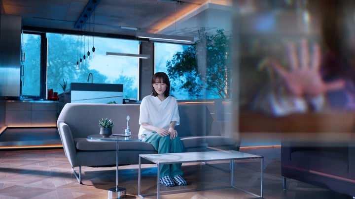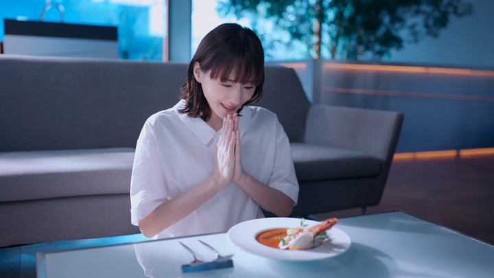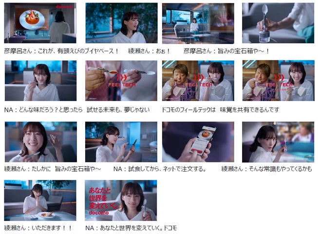 このCMは、ドコモが開発する味覚共有技術「フィールテック」による新しい世界を体験するものです。