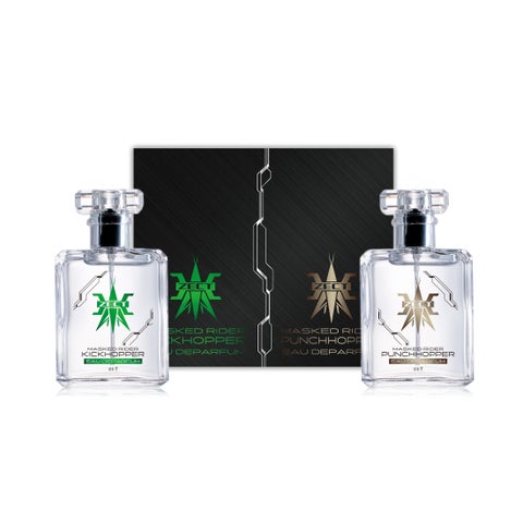 この香水は、仮面ライダーカブトのキャラクターである仮面ライダーキックホッパーと仮面ライダーパンチホッパーをイメージしています。
