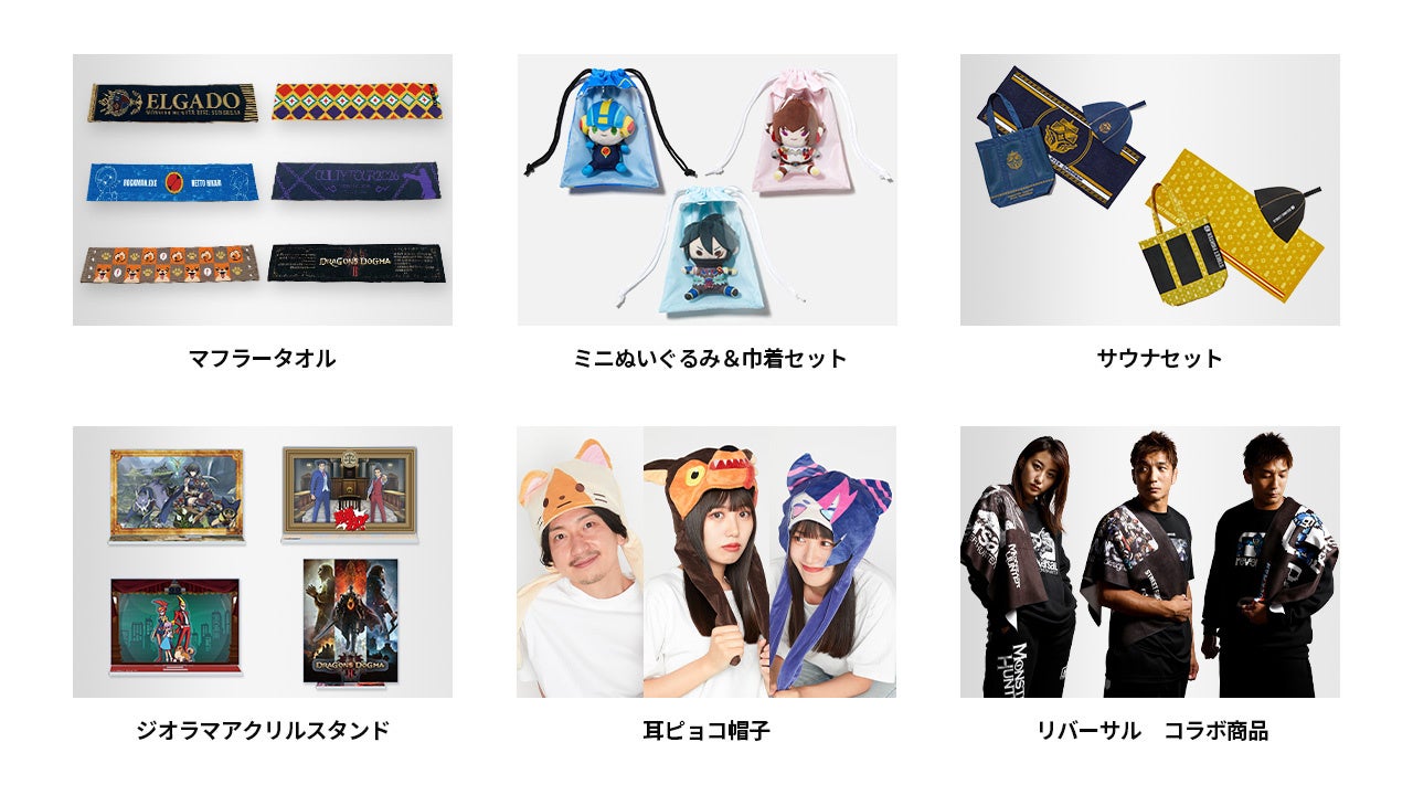カプコンの人気キャラクターグッズ、例えばモンスターハンターやストリートファイター、バイオハザードのグッズが揃っています。