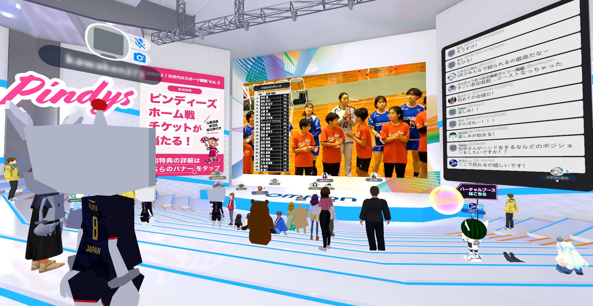 このイベントでは、仮想空間で日本リーグの試合を無料で観戦することができます。