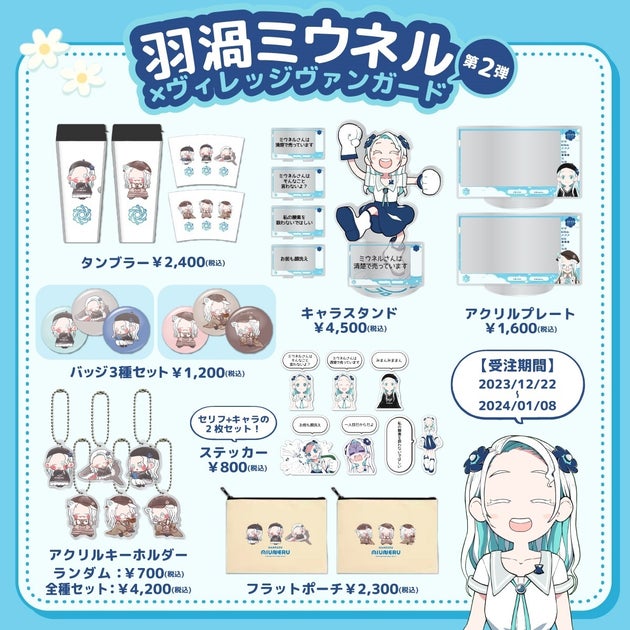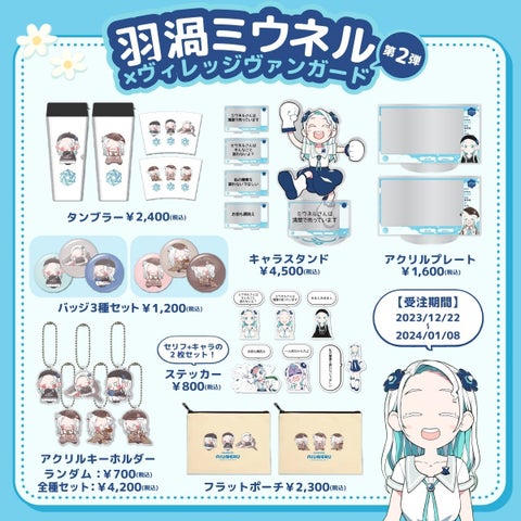 2023年12月22日(金)から、人気VTuberの羽渦ミウネルとヴィレッジヴァンガードのコラボグッズの第2弾が受注販売されます。