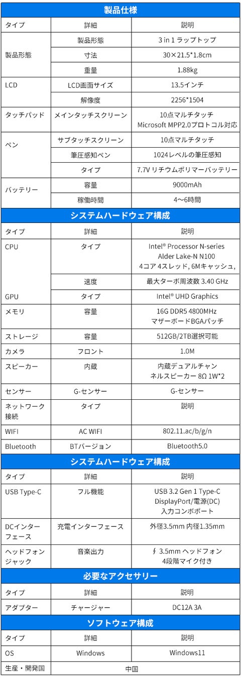 さらに、タブレットモード、デュアルスクリーンモード、ノートPCモードの3つのモードを搭載しており、使用方法はユーザーのニーズに応じて自由に選択できます。