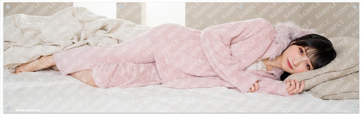 ルームウェアVer.ではエリイちゃんがルームウェアを着てベッドに寝転がっている横型タペストリーです。