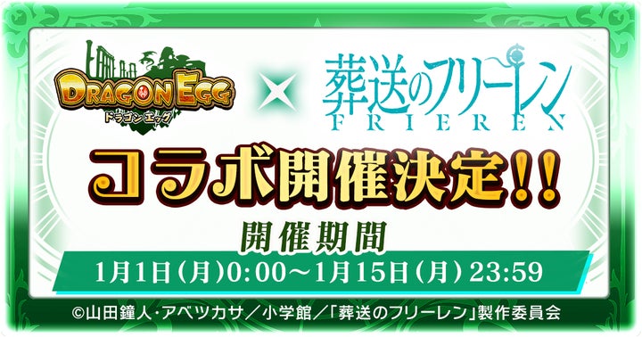 株式会社ルーデルは、友達対戦RPG『ドラゴンエッグ』にて、アニメ『葬送のフリーレン』とのコラボレーションイベントを2024年1月1日から15日まで開催します。
