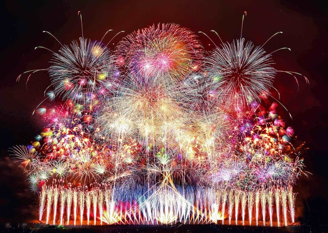 花火会場では、伝統的な郷土芸能や地元グルメ、そしてエンターテイメント性の高い花火を楽しむことができます。