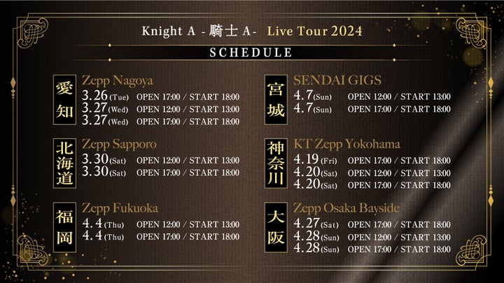 株式会社STPRは、アイドルユニット「Knight A -騎士A-」の2024年ライブツアー《Knight A -騎士A- Live Tour 2024》の開催を発表しました。