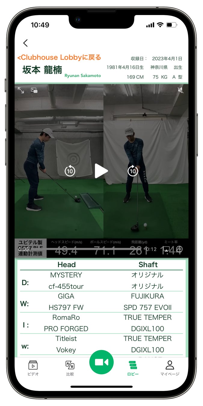 リリースまもなく、多くのユーザーから要望されたコンテンツになります。自分のスイングを撮影したら、どこに問題があるのか、どこを改善しなければいけないのか、自分のスイングだけじゃわからないので、当然プロとの比較したくなります。しかし、ネットに落ちてるコンテンツは撮影角度、距離、画面サイズ、再生スピード、使用クラブ等条件がさまざまなのと、身長、体重、年齢など身体条件も違いがありすぎるので、鑑賞価値はあると思いますが、比較、検証、考察価値はかなり低いと感じてます。そして最も重要なのは、見てるスイングがどれぐらい飛んでるのかが基本わからない。いわゆるスイング情報と飛距離情報は分離している。