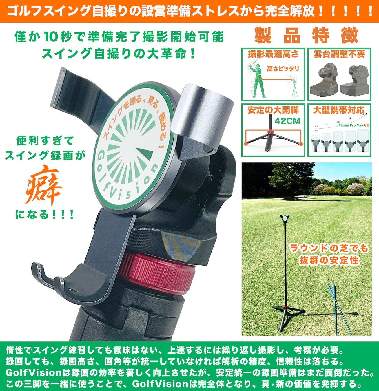 是非スイング練習でGolfVisionアプリとGoflVIsionスイング撮り専用三脚を併用して、今まで体験したことがない、スイング練習の楽しさを感じていただき、そして著しく成長する自分のスイングを記録してください。