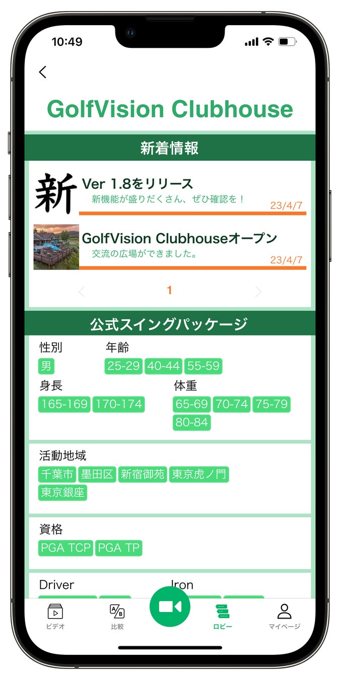活動2年目に入り、初のリリースV1.8は既存機能の強化だけでなく、多くのユーザーから期待されてたプロのスイングパッケージやコミュニティー広場(クラブハウス)を追加。