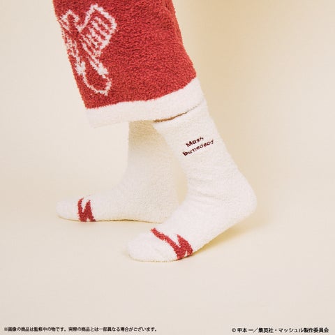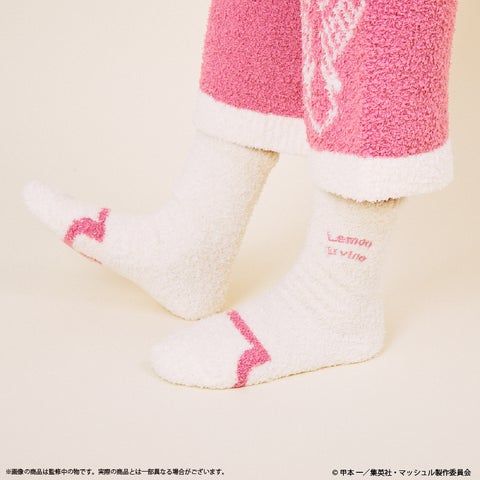 また、ルームソックスも同様のモコモコ素材で作られており、キャラクターの名前が刺繍されています。