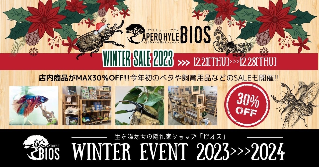 アペロヒューレ・ビオスでは、ベタや飼育商品が最大30%OFFになります。