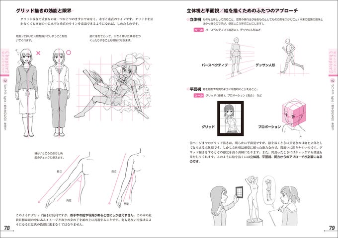 また、人体のバランスや立体感の表現方法も丁寧に解説しており、女の子の描き方をマスターすることができます。