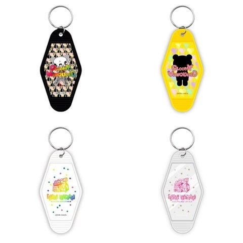 モーテルキーホルダーやラバーコインケース、キラキラシールなど、さまざまなアイテムが取り揃えられています。