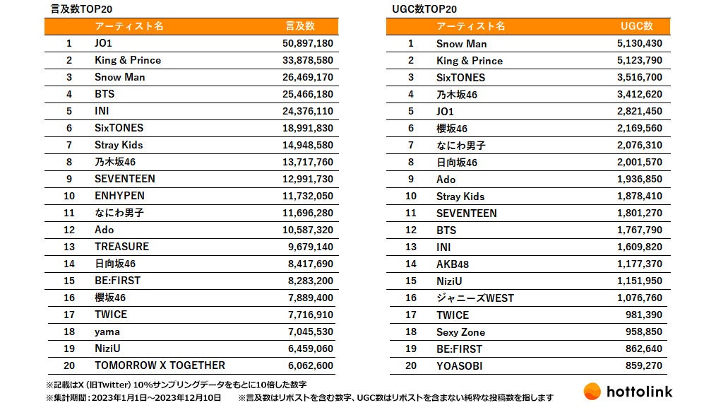 株式会社ホットリンクは、X(旧Twitter)のデータを分析し、2023年に話題となったアーティストを調査しました。