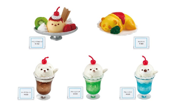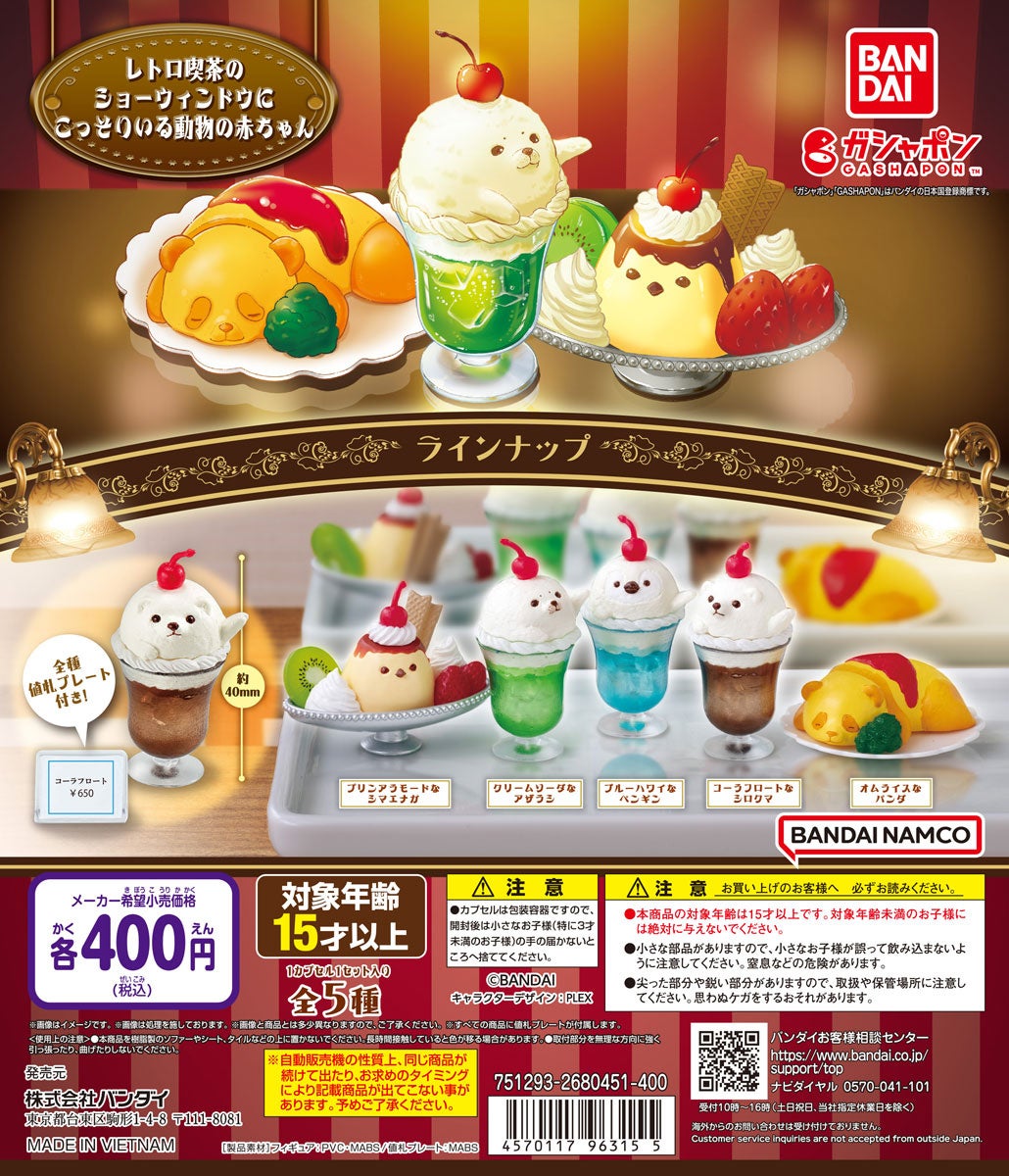 このカプセルトイは、レトロな喫茶店のショーウィンドウをイメージしたフィギュアで、可愛らしい動物の赤ちゃんがデザインされています。