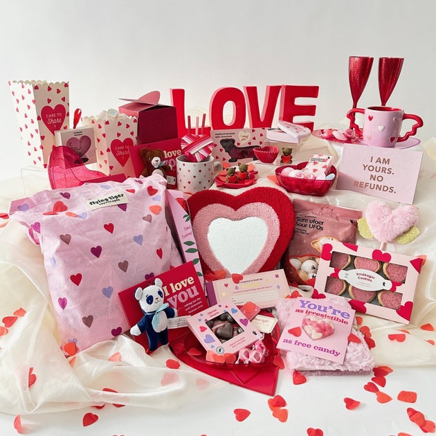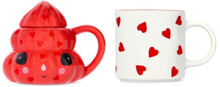 マグカップやシャンパングラス、トートバッグなど、ハート型やキュートなデザインが特徴です。