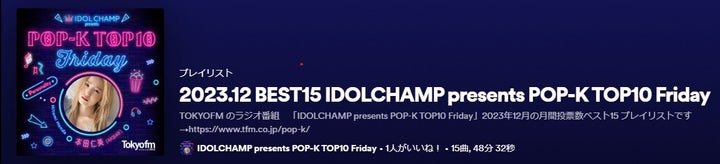 - Spotifyの番組公式プレイリストで上位15曲が公開されている