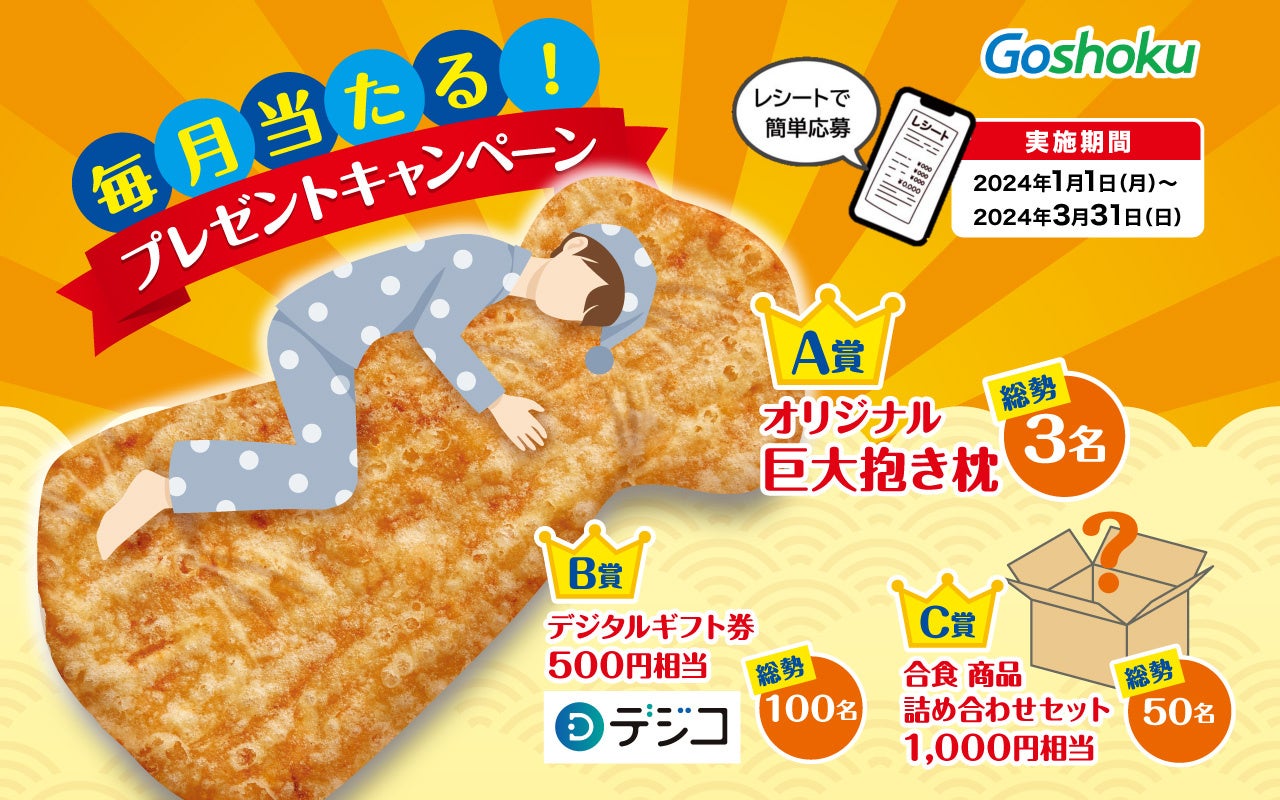 賞品には巨大抱き枕、デジタルギフト券、合食商品詰め合わせセットがあります。