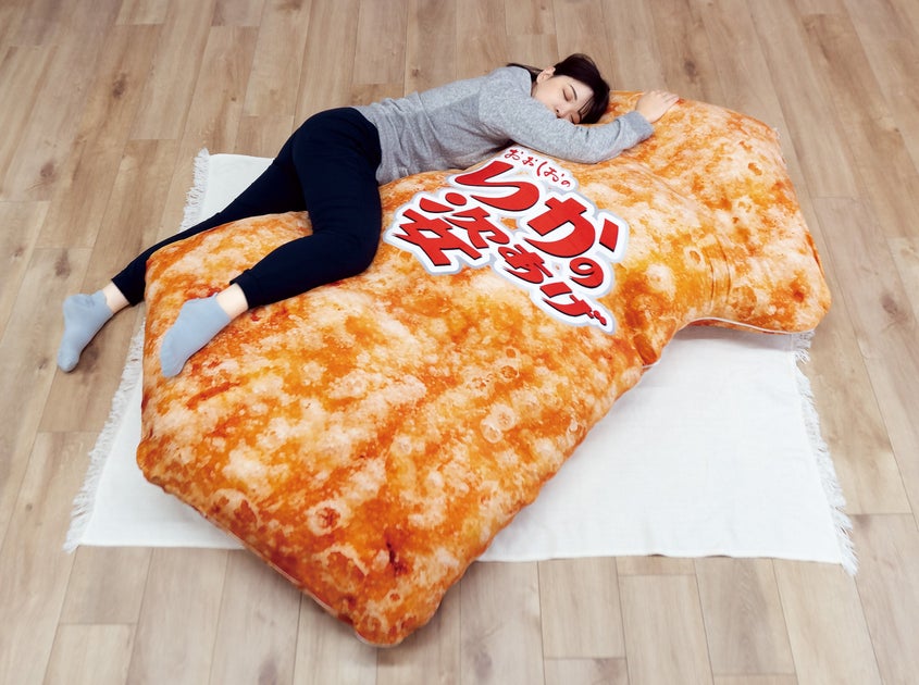 - 巨大抱き枕は全長約185cmで、身体にフィットしやすいビーズクッションを使用