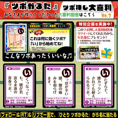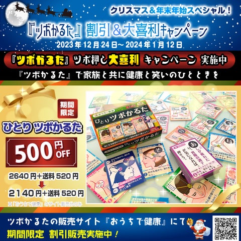また、割引&大喜利キャンペーンでは、『おうちで健康 ひとりツボかるた』を特別価格で販売しています。
